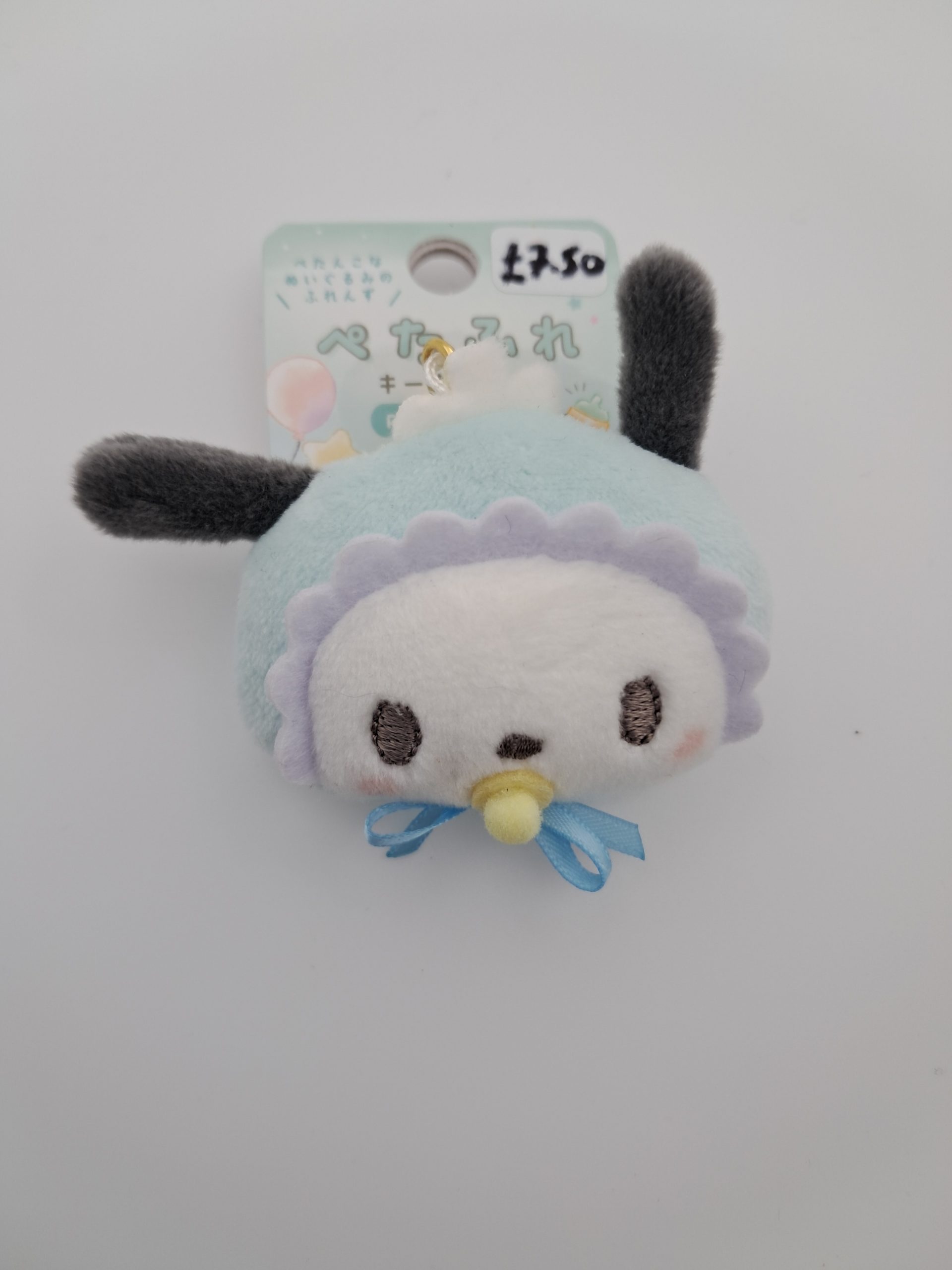 This palm sized Plush is so sweet; it features as a babyPochacco complete with a dummy in its mouth. The detailing on this little plush is lovely; the plush is soft & it has a ball chain attached for use on your bag if required.