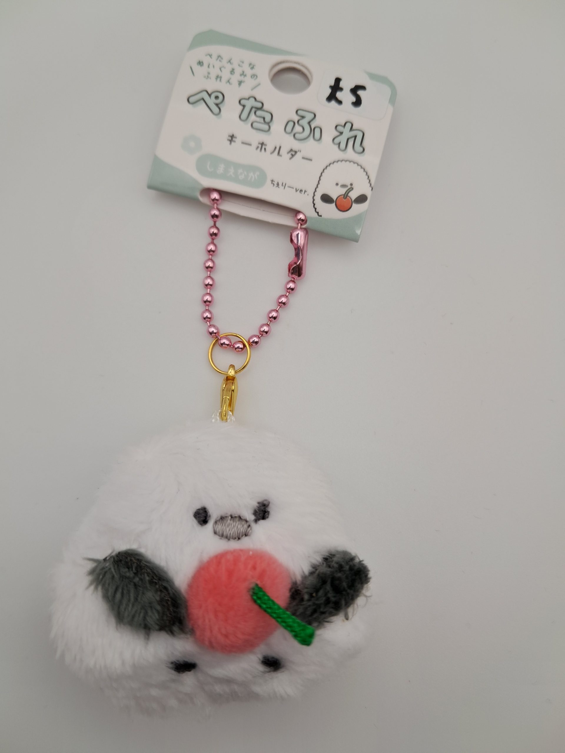 This cute bird is so soft and cute! Hugging a cherry for a snack, so sweet! This little bird would look so cute as your companion on your bag.