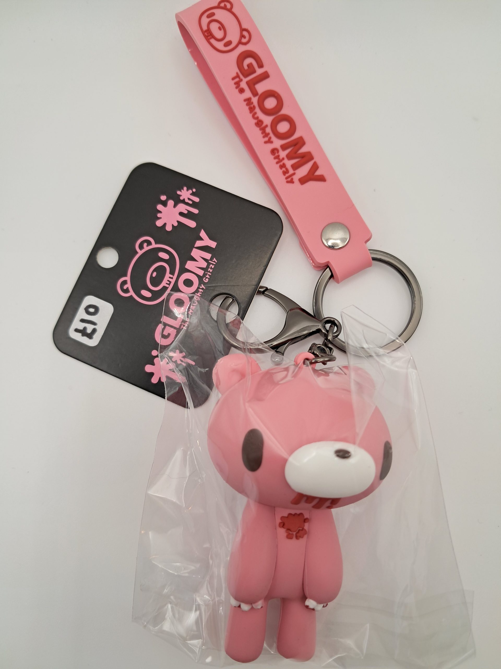 Take Gloomy Bear with you on your travels! This keychain comes with two types of attachments and a solid Gloomy figure – so naughty, so cute!