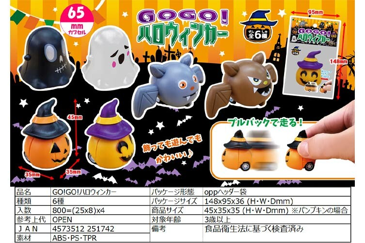 This cute Halloween pull-back car [GOGO Halloween Car] comes in 6 Halloween designs!